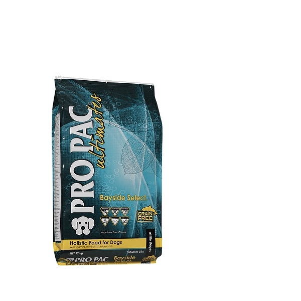 PRO PAC ® Ultimates™ Bayside Select™ es una comida para perros a base de proteínas de harina de pescado blanco de primera calidad que proporciona los aminoácidos esenciales para ayudar a mantener fuertes los músculos y un pelaje sano y brillante. Esta fórmula antioxidante está fortificada con vitamina A y vitamina C y fibras naturales que ayudan en la digestión.