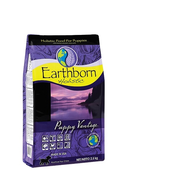 Earthborn Puppy Vantage formulado especialmente para cachorros en crecimiento y fortalecido con DHA, ácido graso proveniente del Omega 3 que ayuda a un mejor desarrollo cerebral y desarrollo de la visión. Los cachorros demandan alta cantidad de energía para crecer, por lo que se incluye las mejores fuentes de proteínas animales. Este alimento combina harinas de pollo y pescado (5 a 6 veces más nutrientes que el pollo y pescado) para el desarrollo de músculos sanos y fuertes, no contiene Sub productos. Además se elimina el maíz, trigo, soya y gluten para incorporar carbohidratos de calidad como la avena y el arroz integral para una fácil digestión y un análisis garantizado en palatabilidad